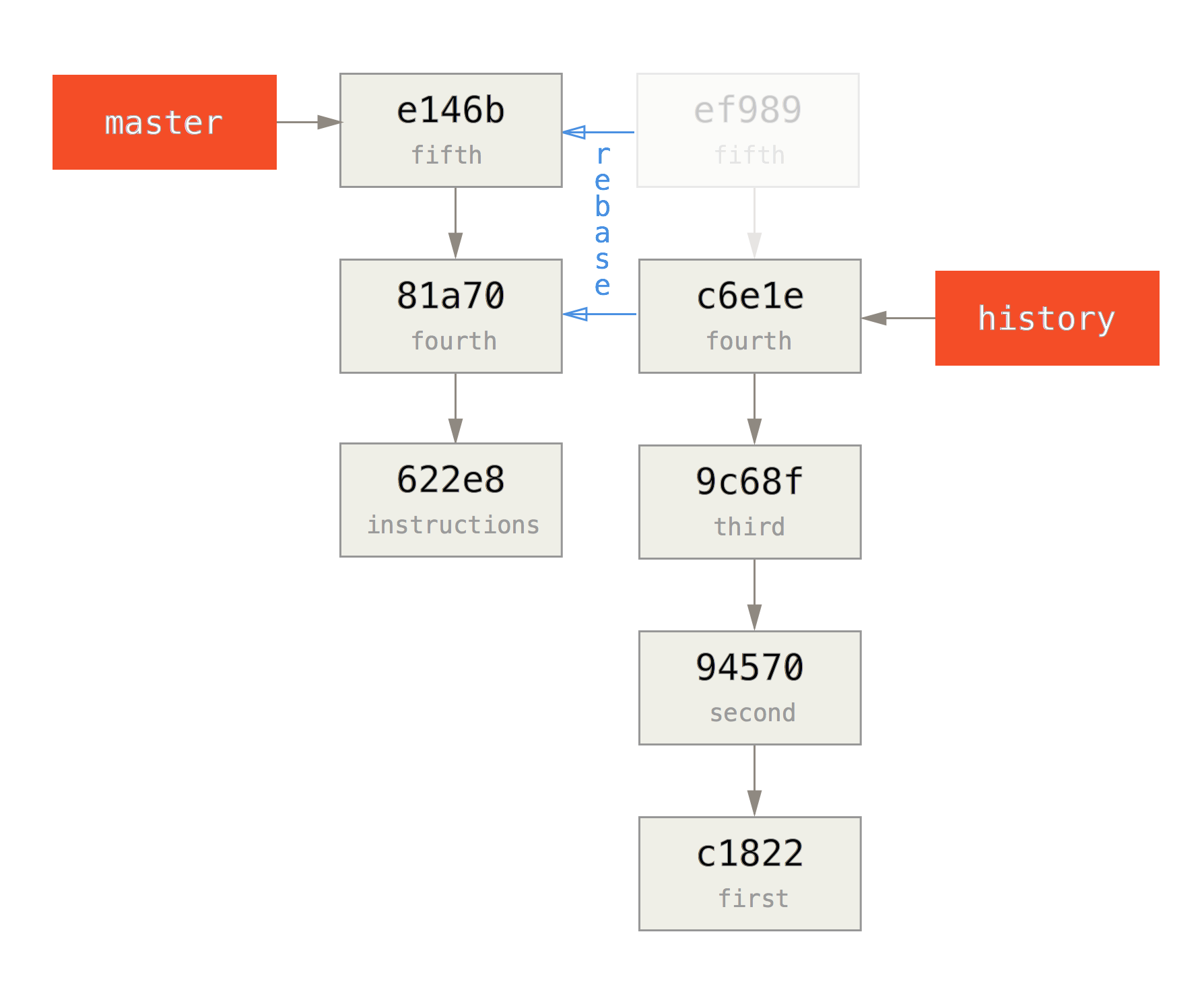 很酷,是不是?不用改变上游的 SHA-1 我们就能用一个提交来替换历史中的所有不同的提交,并且所有的工具(bisect,blame 等)也都奏效。