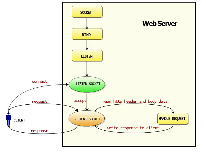 Listen Socket接受客户端的请求, 得到Client Socket, 接下来通过Client Socket与客户端通信。