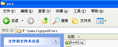 假设指定gopath是文件系统的普通目录名,当然我们可以随便设置一个目录名,然后将其路径存入GOPATH。前面介绍过GOPATH可以是多个目录:在window系统设置环境变量;在linux/MacOS系统只要输入终端命令export gopath=/home/astaxie/gopath,但是必须保证gopath这个代码目录下面有三个目录pkg、bin、src。新建项目的源码放在src目录下面,现在暂定我们的博客目录叫做beeblog,下面是在window下的环境变量和目录结构的截图: