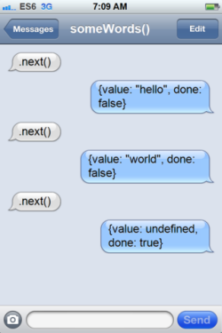 正如你在戏剧中看到的,当生成器对象第一次出现时,它立即暂停了。每当调用它的.next()方法,它都会苏醒并向前执行一部分。