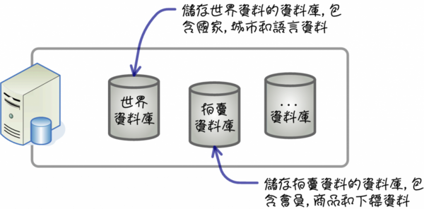 在使用资料库前,要先在资料库伺服器中建立需要的「资料库、database」,你会依照自己的需求,建立一个或多个资料库: