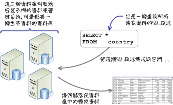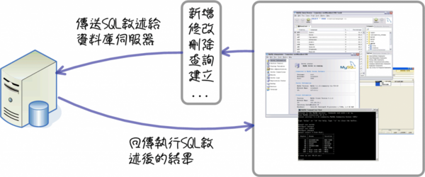 不论是哪一种用户端软体,它们都是使用SQL叙述跟资料库沟通: