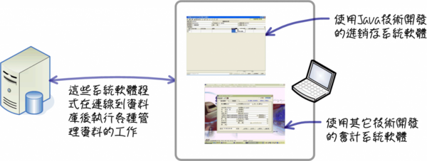 使用像是Java程式设计技术开发的各种应用程式,例如进销存系统或会计系统,对资料库伺服器来说,也算是一种用户端软体: