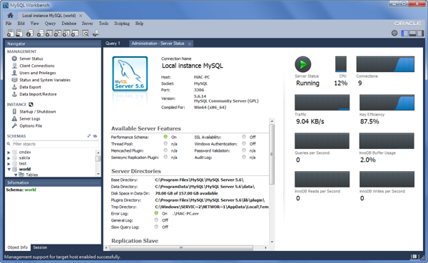 Database Administration可以提供开发人员执行管理MySQL资料库的基本功能,也可以监控资料库的状态: