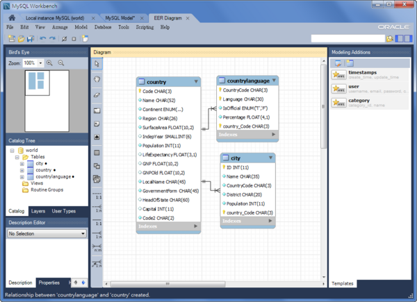 除了国家表格外,你还会在世界资料库中建立储存城市和语言资料的表格: