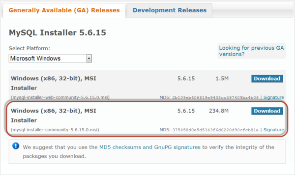 MySQL的官方网站目前提供一个完整的安装程式,在Windows平台只要下载与安装一个档案,就包含资料库伺服器和所有需要的工具软体,包含这里需要使用的MySQL Workbench。你可以到这个连结准备开始下载: