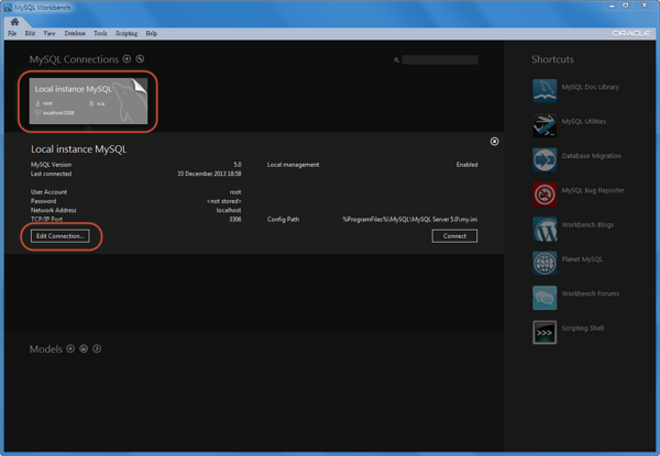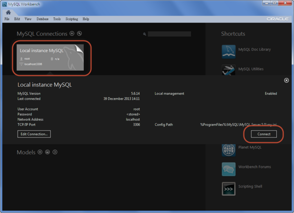 安装程式会启动MySQL Workbench,依照下面的说明,准备设定资料库连线的基本资讯: