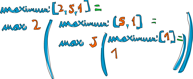 maximum' (x:xs) = max x (maximum' xs)