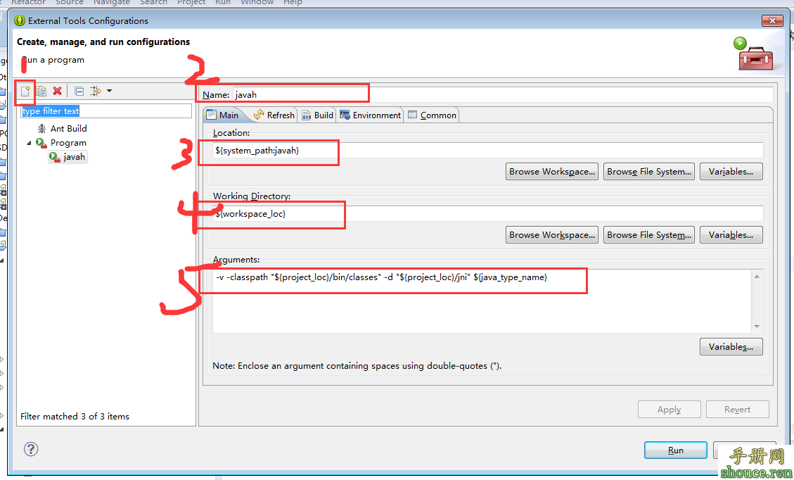 配置好之后,选中需要本地包含native方法的java类 ,并运行javah命令,刷新jni目录,该目录会多一个.h文件
