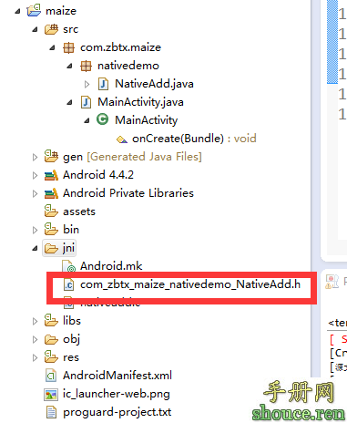 cd 到该目录,直接使用命令:javah -jni com.zbtx.maize.nativedemo.NativeAdd,即可生成.h文件