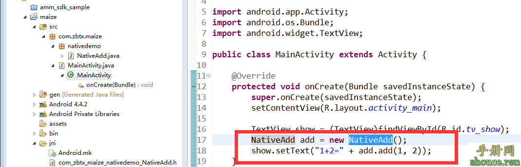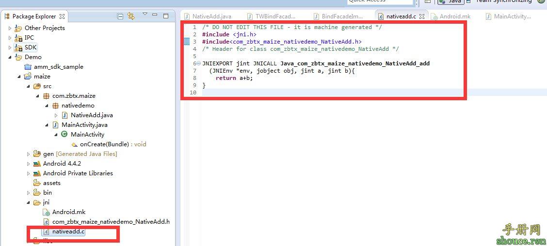 4.在jni目录建立一个.c文件 实现头文件中的方法