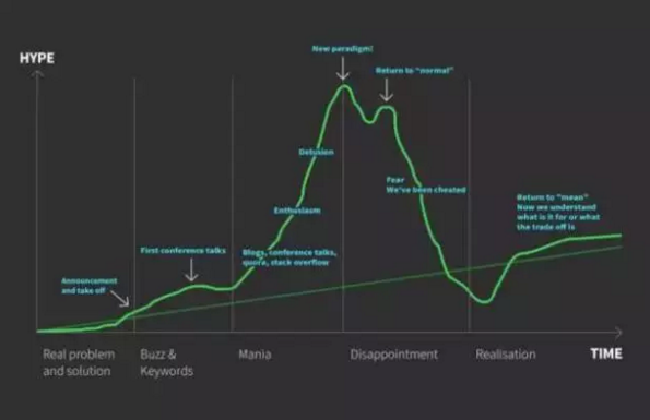 最终团队做了复盘,认清了追逐这项新技术的代价,也认清了新技术适合解决的问题。大家都变聪明了,直到再次凑热闹为止。