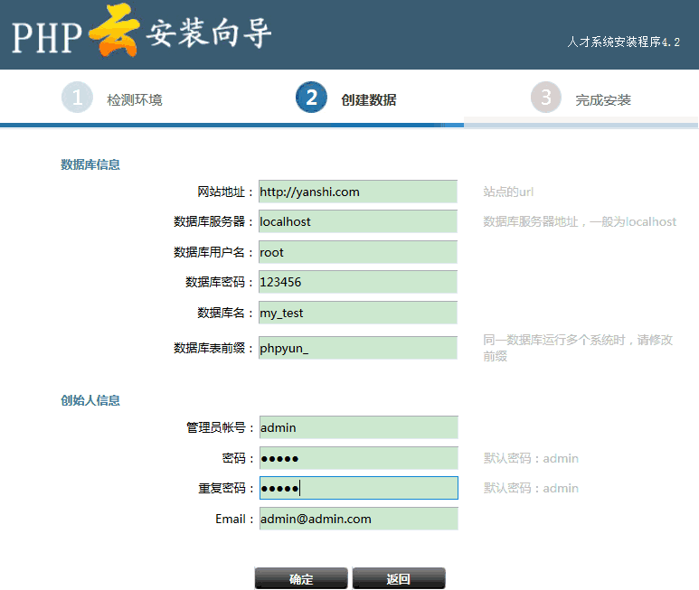 2、第一次访问PHPYun人才系统,会自动提示安装数据库到你的mysql中