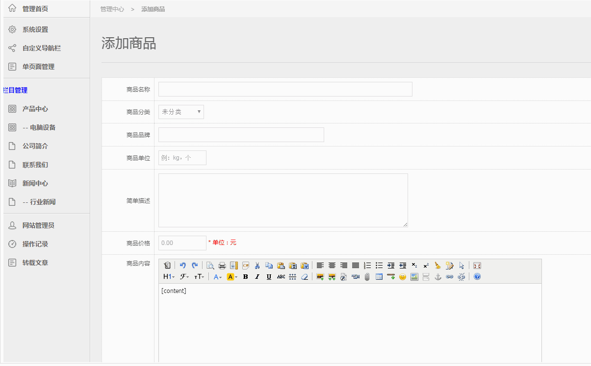 目前实现了三个模型,单页模型,文章模型,产品模型;