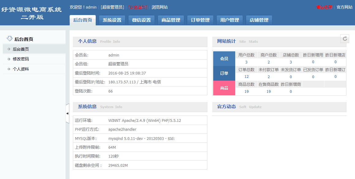 源码安装教程: 1、解压源码包,把源码放到你自己网站的根目录 2、导入数据库文件(pigcms.sql)并修改数据库配置文件:/conf/db.php 3、登陆到后台 http://your域名/admin.php (注:用户名:admin 密码为:www.shouce.ren) 4、进入后台找到“系统设置”-->“基础配置”-->“网站网址”等等一些基本的配制修改为自己的域名(注:解压出来的图片)