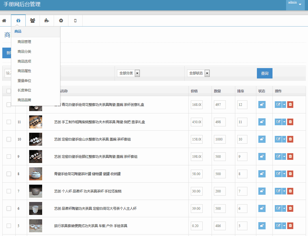 3、后台地址:xxx/admin,用户名:admin 密码:123456