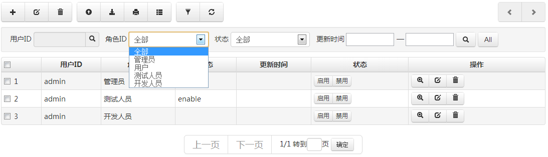 表间关系处理这里以用户角色表为例,用户ID和角色ID分别是关联用户表和角色表