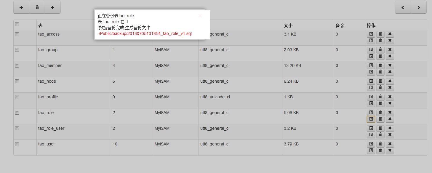 一个thinkphp操作类,用来导出mysql数据和导入备份