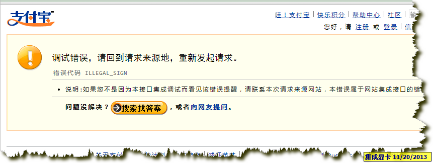 1、alipay.config.php 下的 cacert.pem 文件的路径一定要对,之前我没注意这点,结果出来以下的错误: