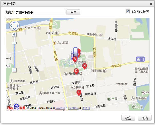 一个项目要求插入动态地图并显示周边公交信息,可是现在用的编辑器没有这个功能只能自己改了,搜索的时候标注会自动移动到第一个结果处,下面看下效果