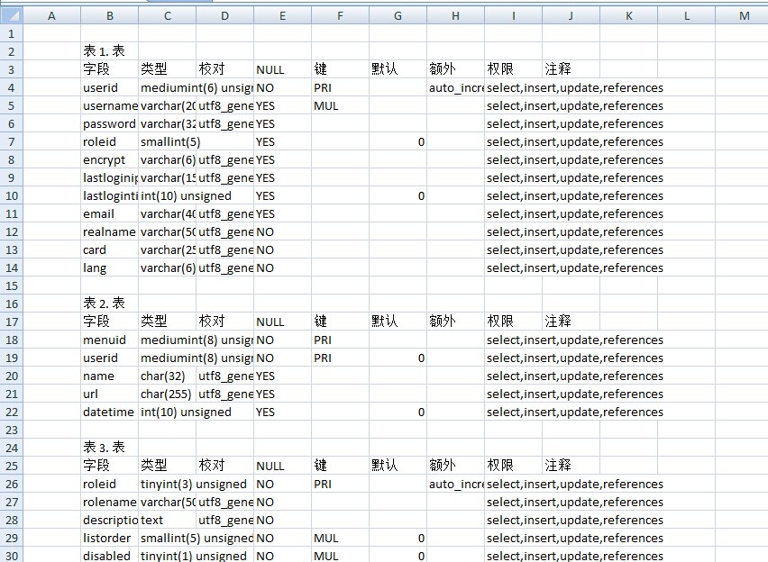 thinkphp3.2结合PHPExcel导出数据库里所有表的结构,含注释