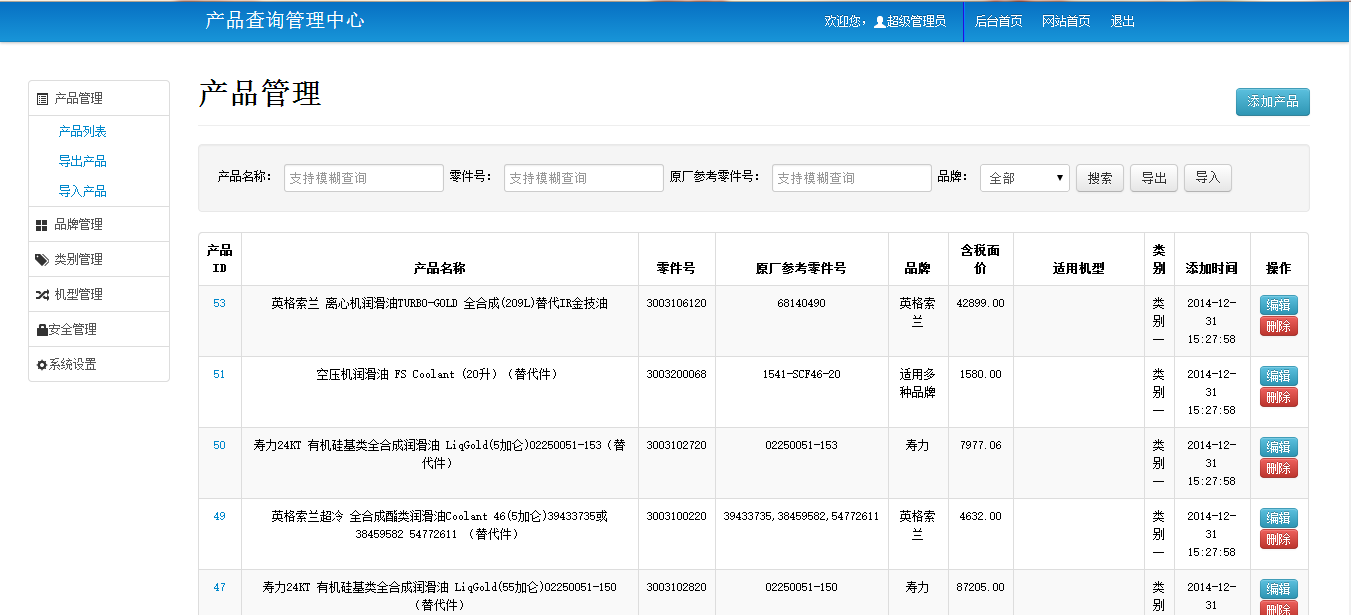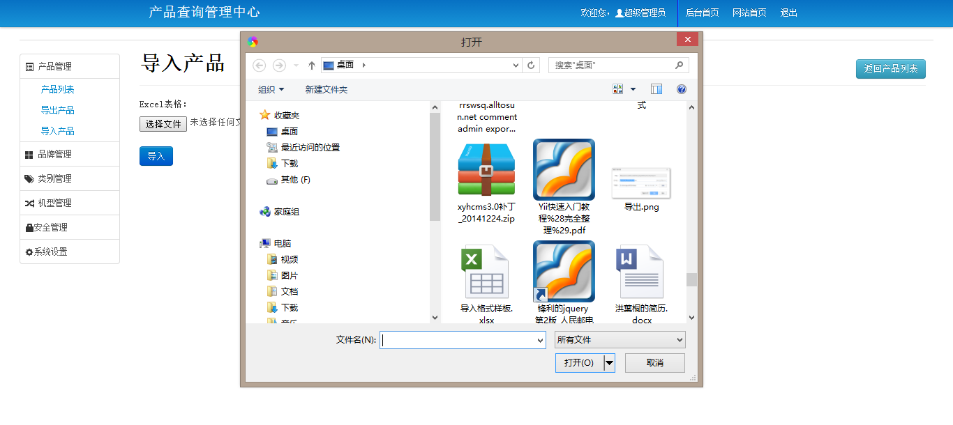 最近接了一个小活,客户要求实现既可以手工录入数据又可以excel文件上传后批量导入到数据库,要求兼容.xls和.xlsx格式;数据库里的数据可以按照搜索条件和分页导出为excel文件。比较麻烦的是excel里的一个机型字段是一对多的,即一个产品对应多个机型,是按照逗号分隔的,导入时要先将机型分隔成数组,然后再判断该机型是否存在,不存在就插入到机型表里,存在则获取到该机型对应的id,然后将id用逗号拼接成字符串存入数据库中。特将代码公开,以方便大家学习。