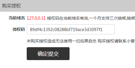 //说一下原理 取服务器当前域名给MD5加密后与授权码对比