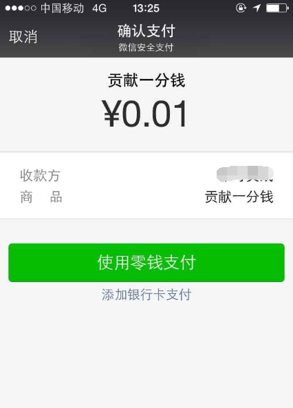 $unifiedOrder->setParameter("body","贡献一分钱");//商品描述