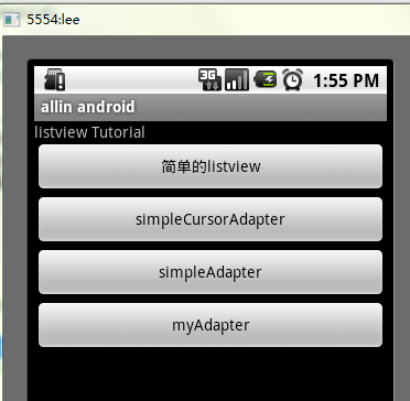 其中以ArrayAdapter最为简单,只能展示一行字。SimpleAdapter有最好的扩充性,可以自定义出各种效果。SimpleCursorAdapter可以认为是SimpleAdapter对数据库的简单结合,可以方面的把数据库的内容以列表的形式展示出来。