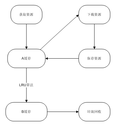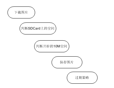 下载成功后保存到sdcard上,需要先判断10M空间是否已经用完,如果没有用完就保存,如果空间不足就根据LRU规则删除一些最近没有被用户的资源。