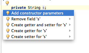 快捷的代码生成器 点击左边的灯泡,或者按Control+Enter可以看到IDEA给出的智能提示