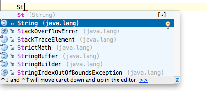 Eclipse的智能提示只有在完整输入类名或者变量名,再按下点号之后才有。而IDEA的自动提示,则是全程的:
