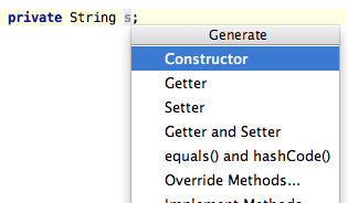 按Option+Enter可以看到IDEA给出的生成代码菜单