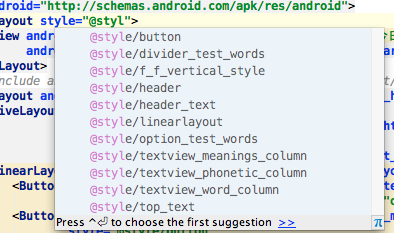 IDEA能够识别Android资源文件中的符号,并给出智能提示,这在编辑layout和drawable文件时真是太有用了。