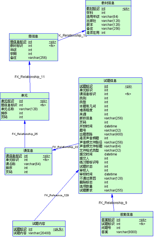 【试题内容】、【答案信息】两个表,最初是作为几个字段添加到【试题信息】里的,可以看到试题内容和答案这两个字段很长,在表里有3万记录时,表已经占 了1G的空间,在列试题列表时非常慢。经过分析,发现系统很多时候是根据【册】、【单元】、类型、类别、难易程度等查询条件,分页显示试题详细内容。而每 次检索都是这几个表做join,每次要扫描一遍1G的表,很郁闷啊。我们完全可以把内容和答案拆分成另一个表,只有显示详细内容的时候才读这个大表,由此 就产生了【试题内容】、【答案信息】两个表。