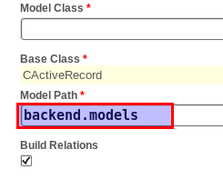 这里可以选择要生成的models的位置,默认的是applications.models。其实,一个gii也可以生成前后台models但用起来稍闲麻烦。