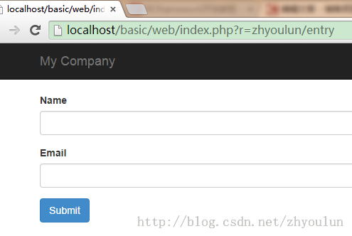 第四步、访问网址http://localhost/basic/web/index.php?r=zhyoulun/entry