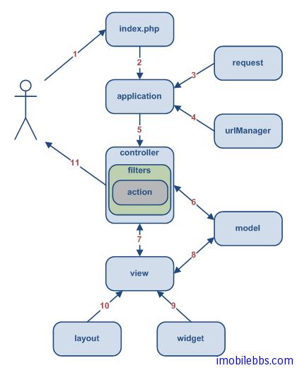 下图展示了一个 Yii 应用在处理用户请求时典型的工作流