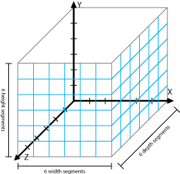 Segments为形体宽度,高度,深度可以分成的份数。 Segments在构造一个非均匀分布的Surface特别有用,比如在一个游戏场景中,构造地貌,使的Z轴的值随机分布在-0.1到0.1之间,然后给它渲染好看的材质就可以造成地图凹凸不平的效果。