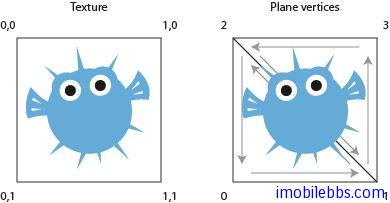 为了能正确的匹配,需要把UV坐标中的(0,1)映射到顶点0,(1,1)映射到顶点2等等。