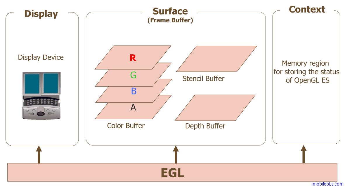 OpenGL ES的javax.microedition.khronos.opengles 包定义了平台无关的GL绘图指令,EGL(javax.microedition.khronos.egl )