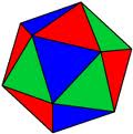 介绍如何使用三角形构造一个正20面体。一个正20面体,有12个顶点,20个面,30条边构成: