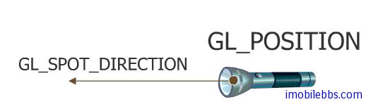 将点光源设置成聚光灯,需要同时设置GL_SPOT_DIRECTION,GL_SPOT_CUTOFF等 参数,GL_POSITION的设置和点光源类似:将 w 设成非0值,通常设为1.0. (x,y,z)为点光源的坐标位置。而对于GL_SPOT_DIRECTION 参数,设置聚光的方向(x,y,z)