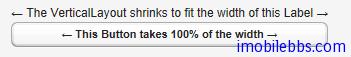 这个例子使用VerticalLayout 布局,将其宽度设为“未定义”,而Button的宽度设为“100%”,此时如果没有Label组件,则必须为这个VerticalLayout 指定宽度,否则无法知道这个“100%”是哪个的“100%”。Label组件的宽度为“未定义”,其宽度取决于其显示字符的长度,在这个例子中,Button的宽度设为“100%”,因此与Label等宽。