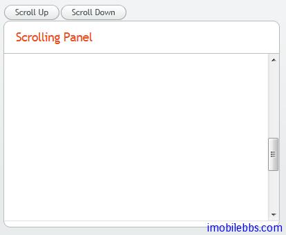 Panel的滚动条也可以使用程序来控制,首先通过 setScrollable(true) 打开滚动条控制,然后使用 setScrollTop()和setScrollLeft()来控制滚动条的位置。