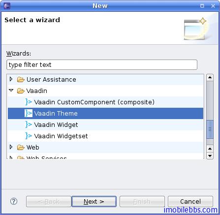 Vaadin 的Eclipse插件可以帮助创建新主题,为项目添加一个新主题. New -> Other -> Vaadin -> Vaadin theme