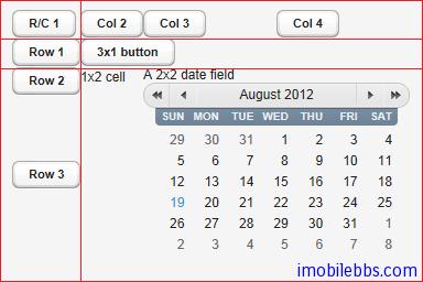 grid.addComponent(new Button("3x1 button"), 1, 1, 3, 1);