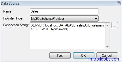 这里的Connection String 为: SERVER=localhost;DATABASE=sales;UID=username;PASSWORD=password; (根据你自己服务器自行修改参数)