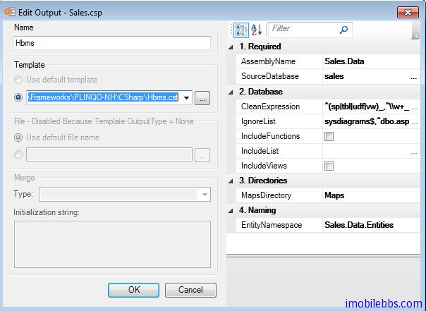 使用有Add Output 可以在项目中添加生成代码的模板,这里选用CodeSmith自带的 PLINQO-NH\CSharp下的三个模板,