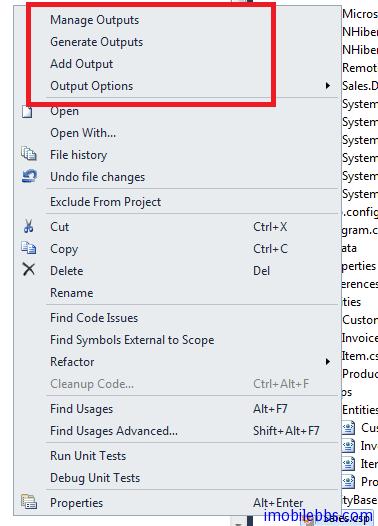 此时如果需要“Generate output? 首先要配置代码模板的属性,这通过”Manage output? 来完成,